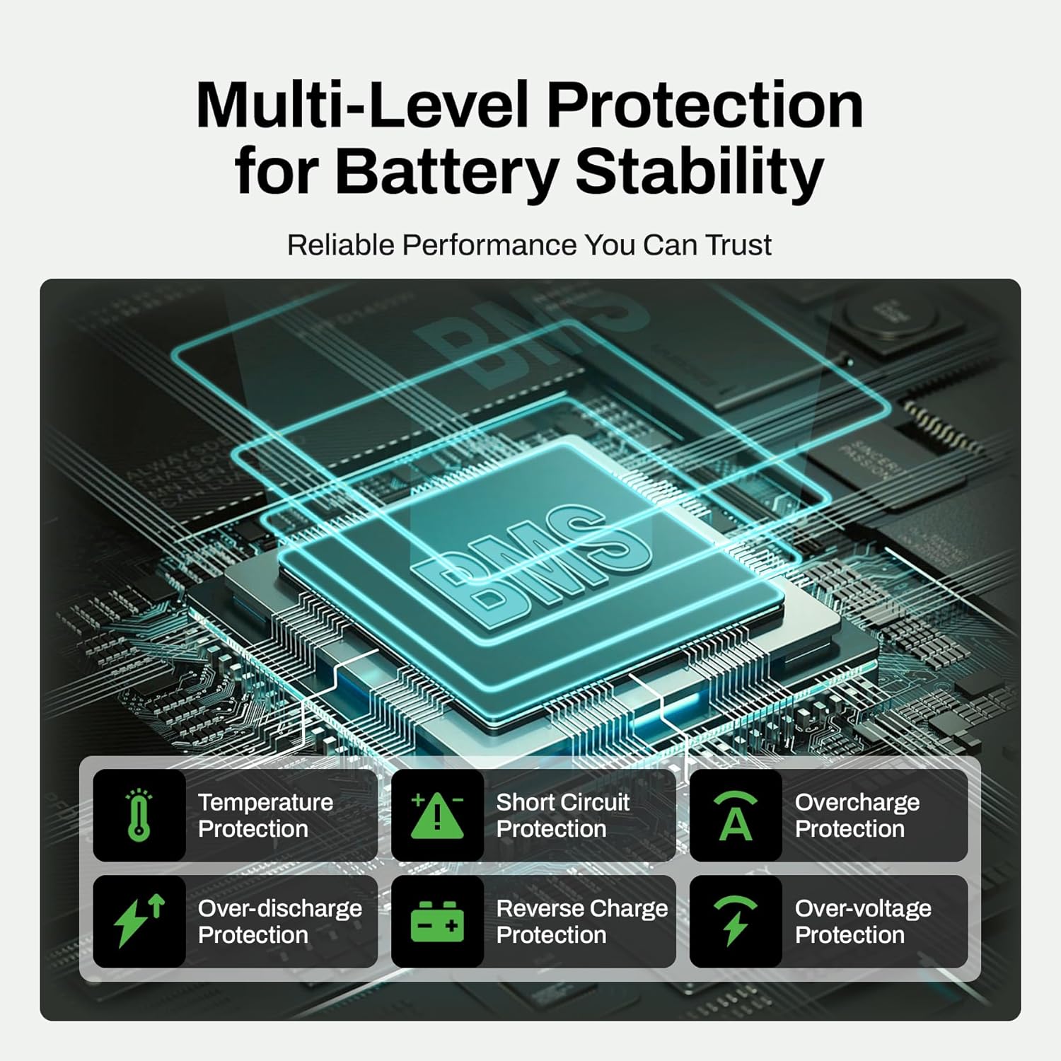 High/low voltage input protection, short circuit protection, overcurrent protection, reverse polarity protection and more