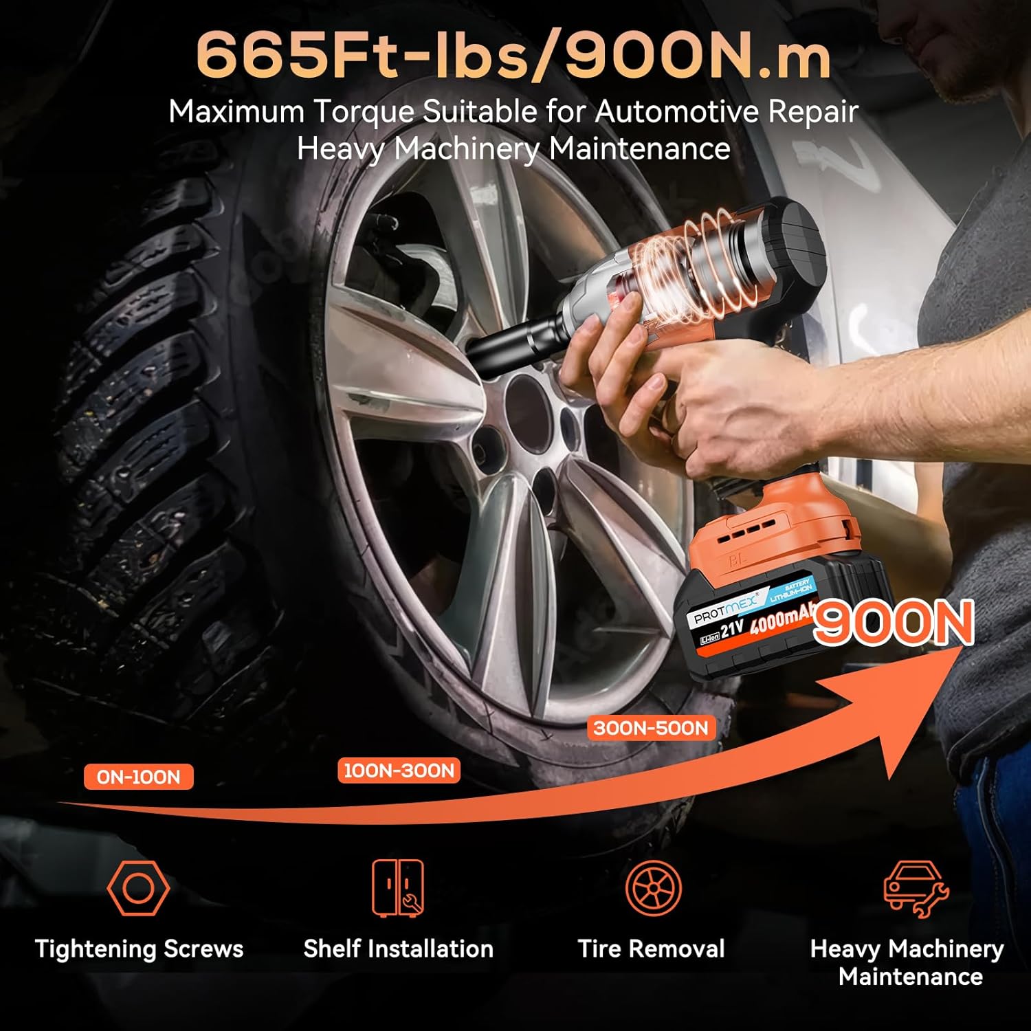 Cordless Impact Wrench, 665Ft-Ibs (900N.m) 1/2" Electric Impact Wrench, 21V Power Impact Drill with 2x 4.0Ah Battery, 6 Sockets, 8 Drill bits, 6 Screws, Impact Gun Variable Speeds for Car/Truck/Mower